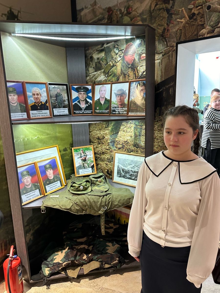 Наши ребята совместно с советником директора по воспитанию, Низамутдиновой Н.В. и воспитателем, Дятловой О.В. посетили Музей Боевой Славы, в котором были представлены стенды с фотографиями, документами, письмами, книгами. Обучающиеся рассматривая экспонаты. Среди них каски, гранаты, фляжки, гильзы, личные вещи участников войны, переданные их родственниками. Посещение музея Боевой славы вызвало интерес у наших ребят. Для каждого из нас очень важно сохранить память о великих людях, совершивших воинские подвиги, не жалея себя ради спасения своей Родины, спасения сегодняшнего поколения!