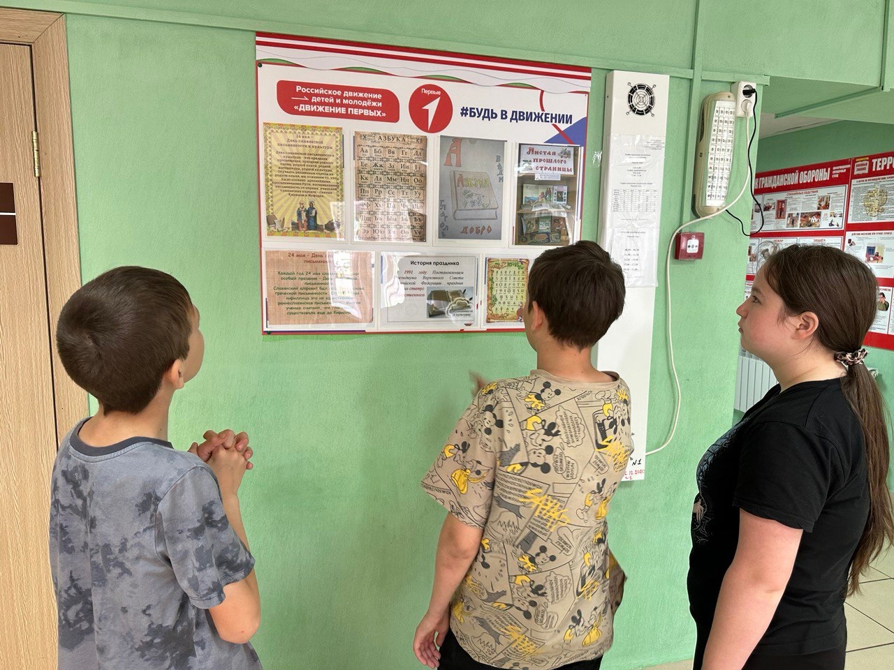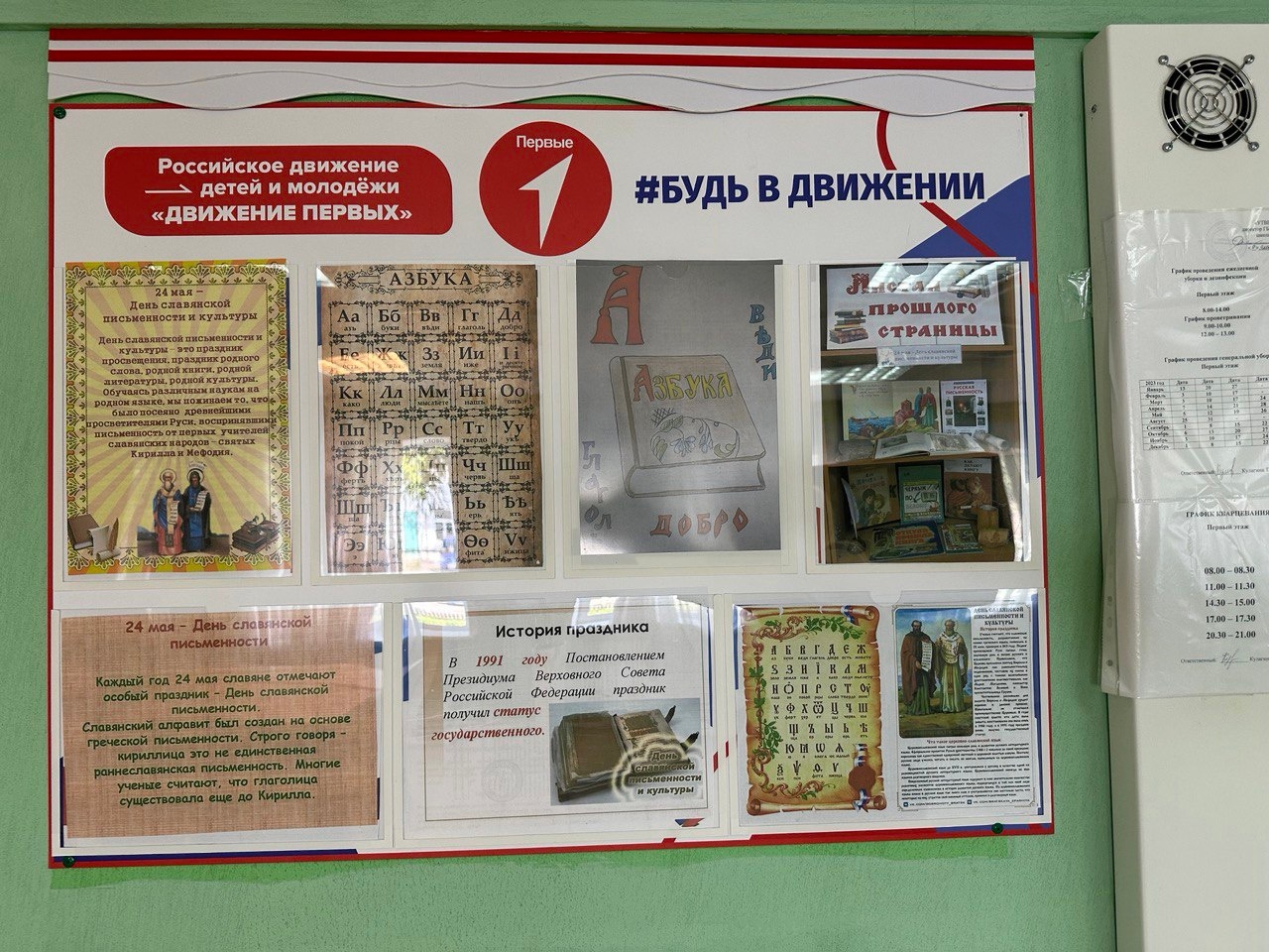 В преддверии Дня славянской письменности и культуры в нашей школе - интернате был оформлен стенд советником по воспитанию совместно с активом 7 класса к этой памятной дате. Ребята попытались прочитать древнеславянский алфавит, который состоит из 29 букв, у каждой из которых есть название: Азъ, Буки, Веде, Глаголъ, Добро… Существует гипотеза: если прочитать весь алфавит по порядку, наделяя каждую букву ее исходным значением, можно найти зашифрованное послание. На современном языке оно звучит примерно следующим образом: «Я Бога Ведаю. Говорю и делаю Добро. Добро Есть Жизнь. Живите Землею, она кормилица наша. И Как мы Люди Мыслим таков и Наш мир».