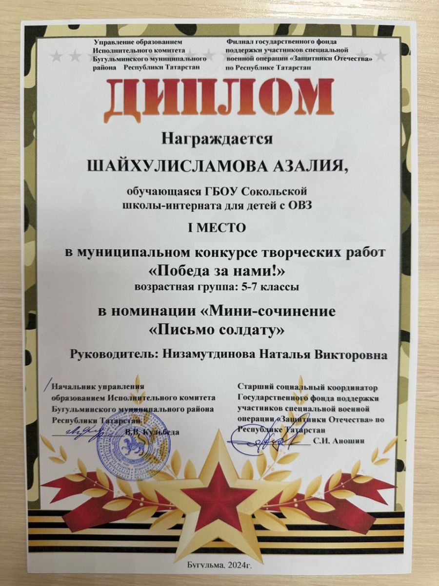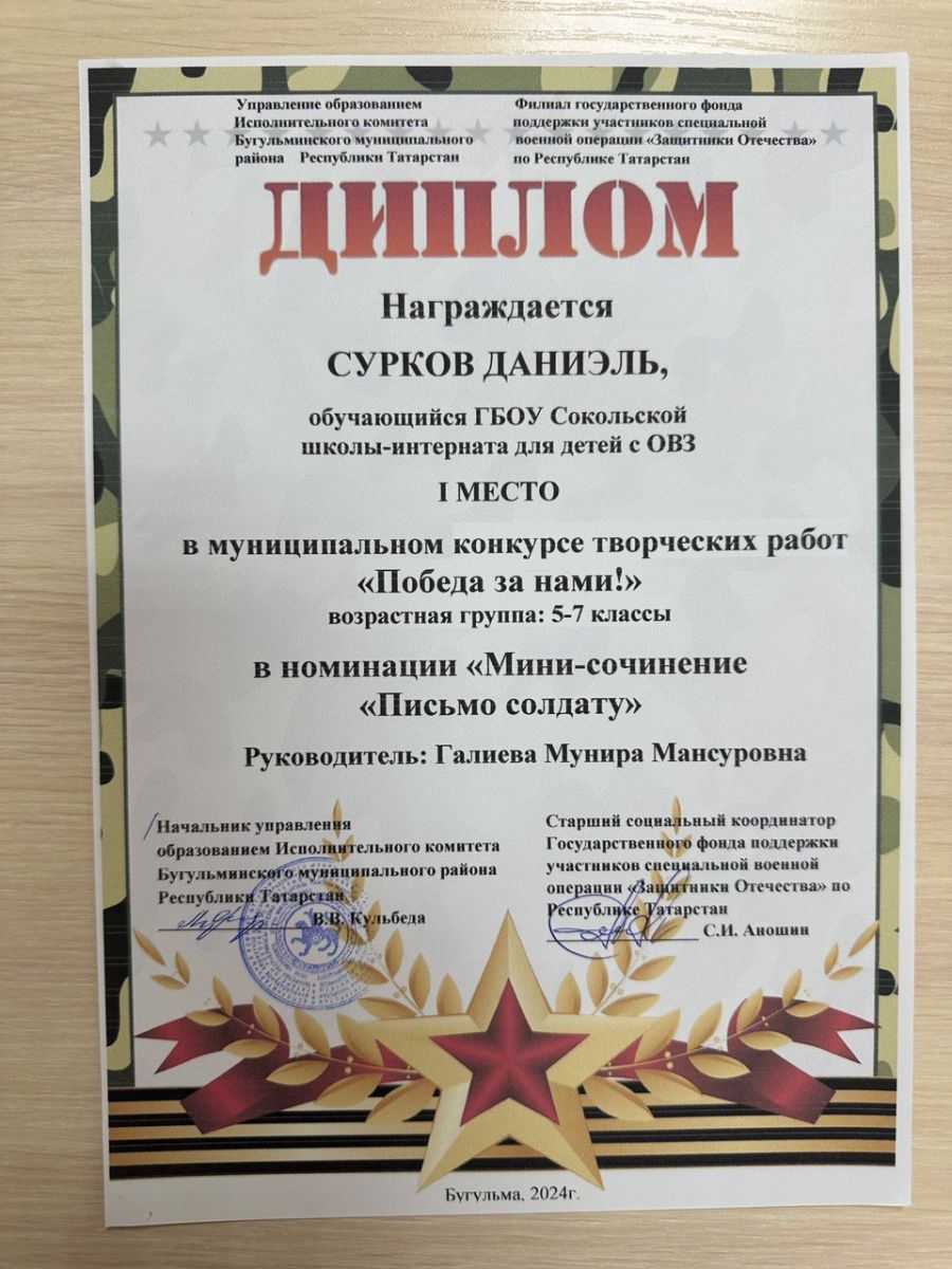 В очередной раз наши ребята награждены дипломами победителей I и II места в муниципальном конкурсе творческих работ "Победа за нами!", в номинациях: "Мини - сочинение: "Письмо солдату", "Авторское чтение". Ребята мы гордимся Вами! Вы большие молодцы!