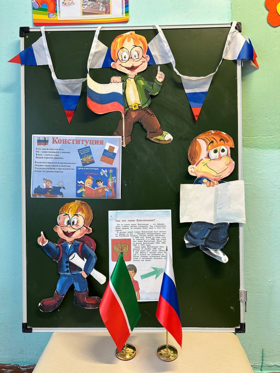 День Конституции Российской Федерации – одна из значимых памятных дат российского государства, которая отмечается ежегодно.12 декабря 1993 года всенародным голосованием была принята Конституция Российской Федерации. Конституция – это главный документ страны, определяющий устройство Российского государства, в котором прописаны права и обязанности людей, закреплены самые главные правила и нормы, которые лежат в основе остальных законов. В школе - интернате проведено гражданско - патриотическое мероприятие в центре детских инициатив, разработанное активом школы и советником по воспитанию, целью мероприятия является ознакомление обучающихся с основными правами и обязанностями, ребята рассуждали на тему: "Что такое Конституция", раскрасили раскраски: "Права ребёнка".