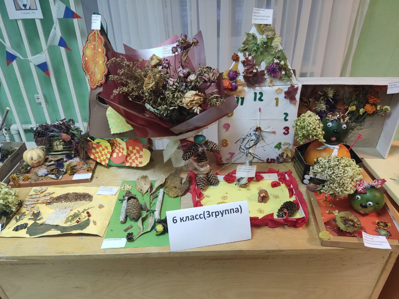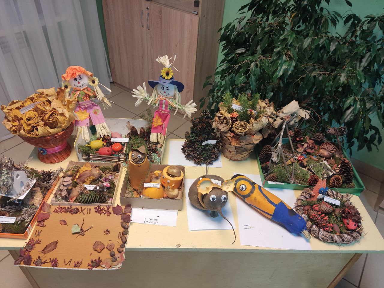 Осень – красивая пора листопада, созревания ягод рябины, овощей, фруктов. Все разнообразие и богатство природного мира можно не только созерцать, но и использовать в творческом выражении. Работа с природным материалом заключает в себе большие возможности сближения человека с родной природой, воспитания бережного, заботливого отношения к ней, формирования трудовых навыков, развития эстетического вкуса. Осень не прошла незаметно и в нашей школе - интернате, 23- 27 октября была организована выставка поделок «Дары осени», в которой приняли участие ребята 2 - 9 классы. Участники выставки удивили нас своей фантазией, оригинальностью и творческими способностями. Были представлены поделки и композиции из овощей и фруктов, шишек, листьев, цветов и других видов природного материала. Очень порадовало, что родители не остались равнодушными и приняли активное участие вместе с детьми в изготовлении поделок и композиций. Вот такие замечательные выставочные работы были изготовлены нашими участниками.