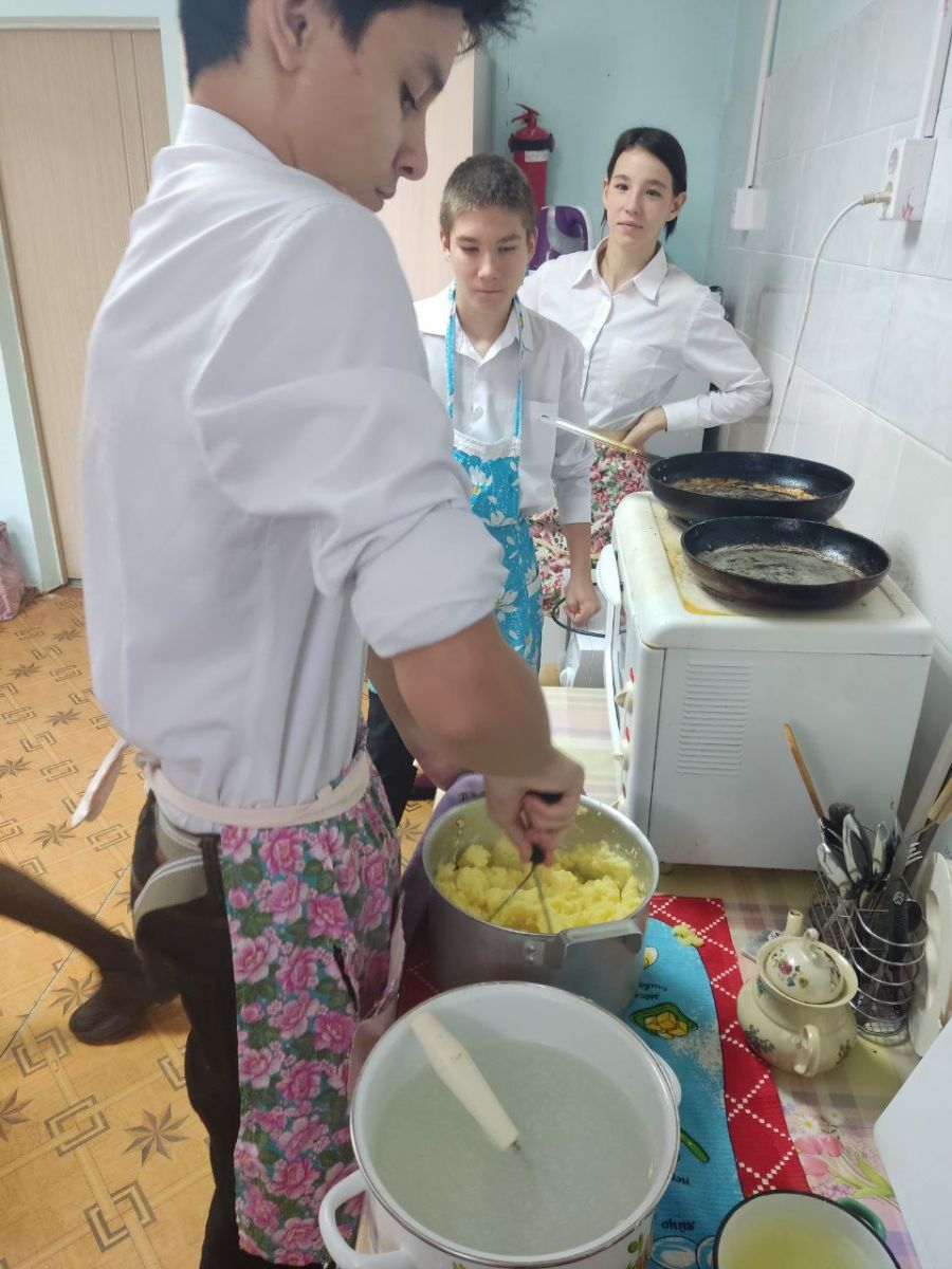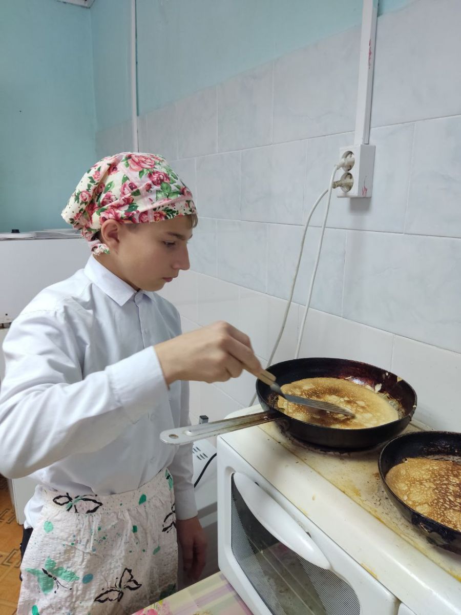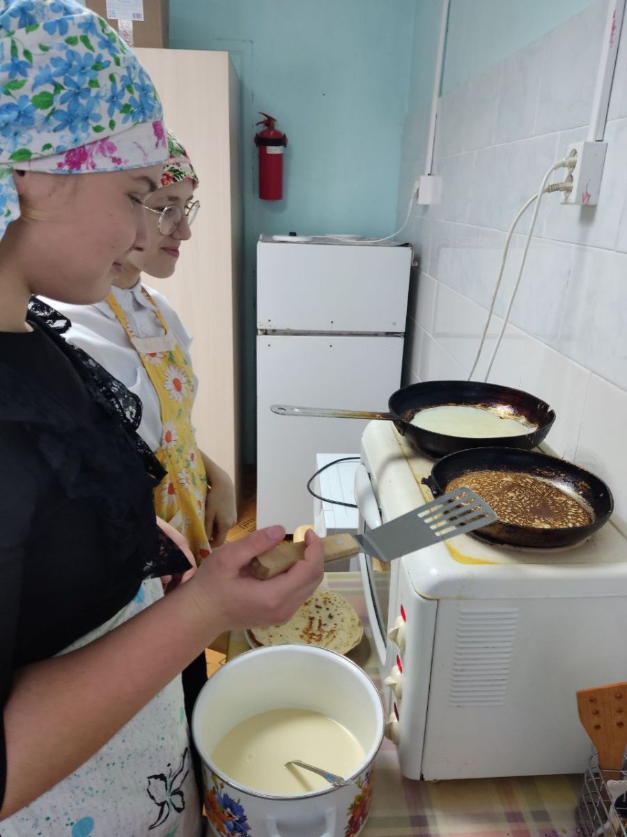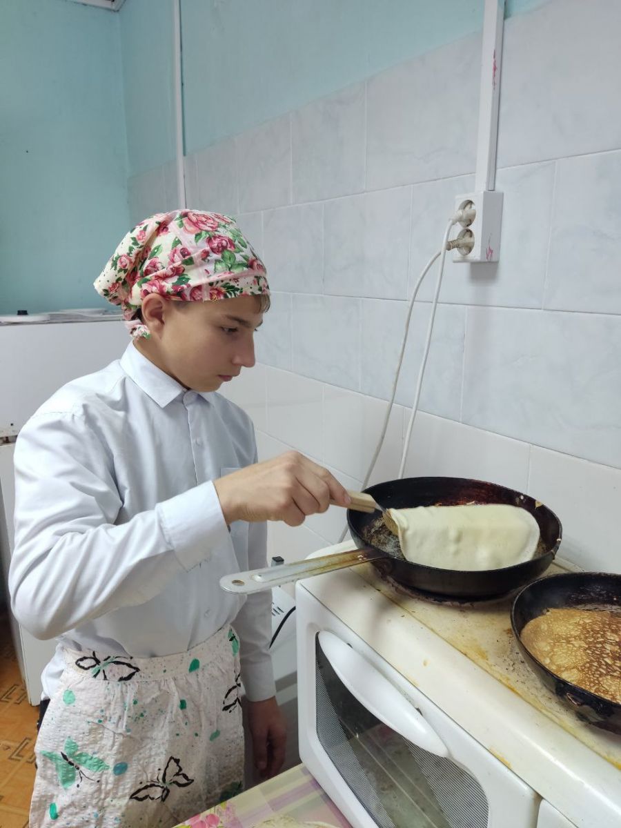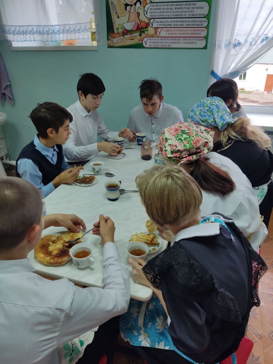 20 октября в ГБОУ "Сокольская школа-интернат для детей с ОВЗ" прошло воспитательное мероприятие, приуроченное ко Дню Повара, которое провела заместитель директора по воспитательной работе, учитель предмета Основы социальной жизни, Фирсова Татьяна Ивановна, совместно с обучающимися 8 и 9А класса. Ребята 8 класса выпекали блины, по особому рецепту, знакомому только в нашей школе - интернате, а ребята 9 А класса испекли замечательные кыстыбый! Пробу сняли и сами обучающиеся, и педагоги, которых также пригласили к столу. Аромат свежезаваренного чая и выпечки манил всех отведать вкуснейшие яства!