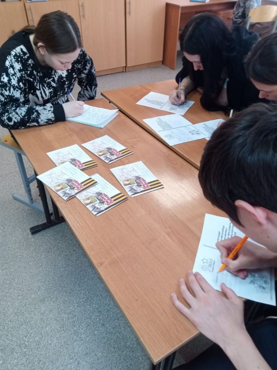 В нашей школе прошла замечательная акция, приуроченная ко Дню Великой Победы, в рамках недели психологии. Обучающиеся 9 класса совместно с воспитателем Старчеусовой Н.Н. написали письма участникам специальной военной операции, выражая свою благодарность и поддержку. В своих посланиях ребята делились своими мыслями о мире, мужестве и значении победы.