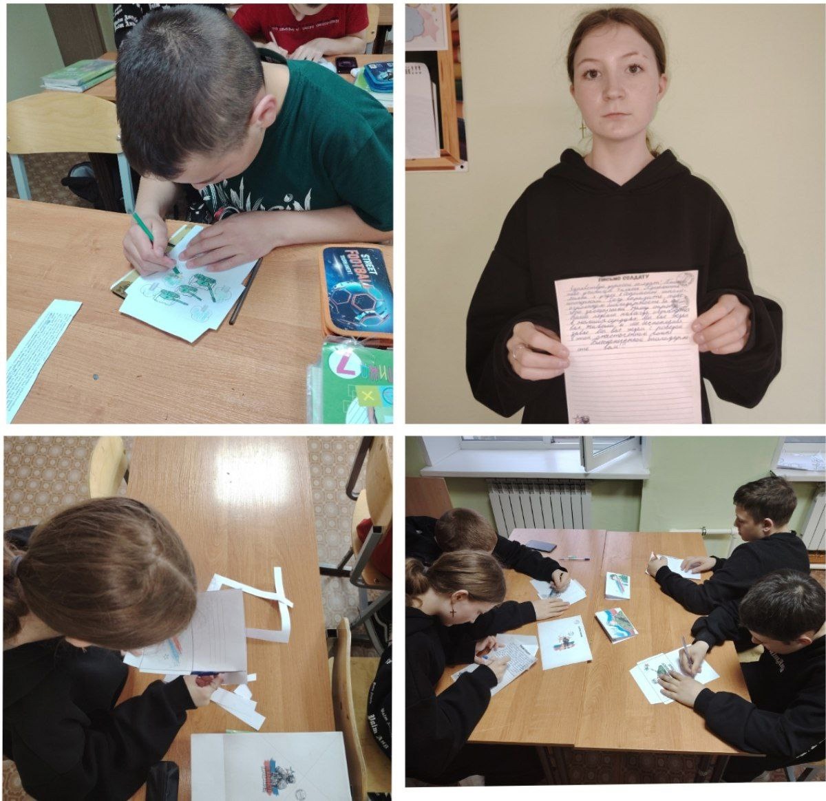 7 класс совместно с педагогом Вафиной С.С. приняли участие в акции "Письмо солдату". Ребята сделали замечательные рисунки и написали письма с пожеланиями. Это мероприятие помогло детям выразить свою поддержку и благодарность защитникам Родины, создать эмоциональную связь с теми, кто служит стране. Участие в таких акциях формирует патриотические чувства и учит заботиться о других. Подобные инициативы важны для воспитания гражданской ответственности и уважения к военной службе.