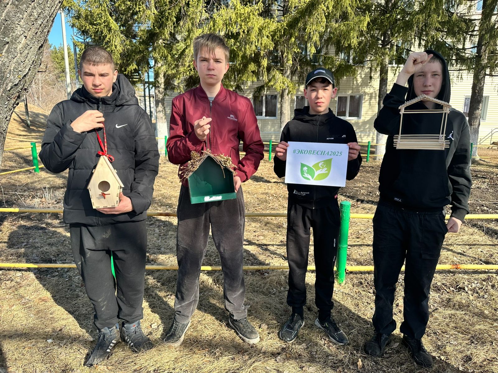 Актив обучающихся совместно с ЗДВР Фирсовой Т.И, советником директора по воспитанию Низамутдиновой Н.В. принимает участие в республиканском конкурсе "Эковесна 2025". В рамках экологического марафона ребята изготовили кормушки, скворечники, приняв участие в акции «Помоги пернатым». В конце недели ребята разместили кормушки и скворечники на территории школы - интерната, далее проводилась подкормка птиц. Данная акция формирует у подрастающего поколения бережное отношение к природе и к миру птиц, развивает творческие способности обучающихся и интерес к природоохранной деятельности.