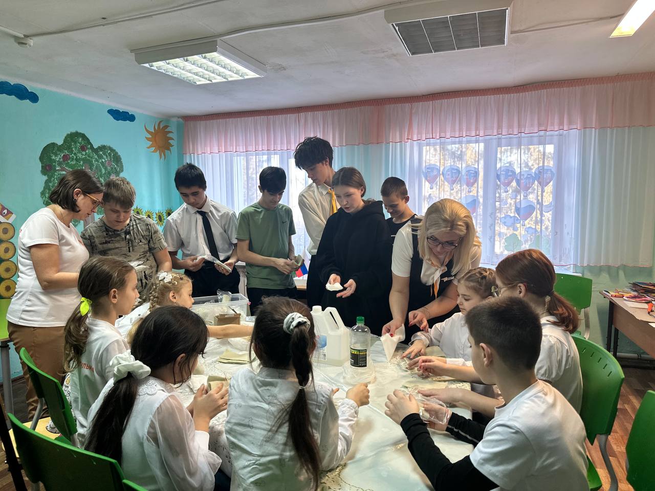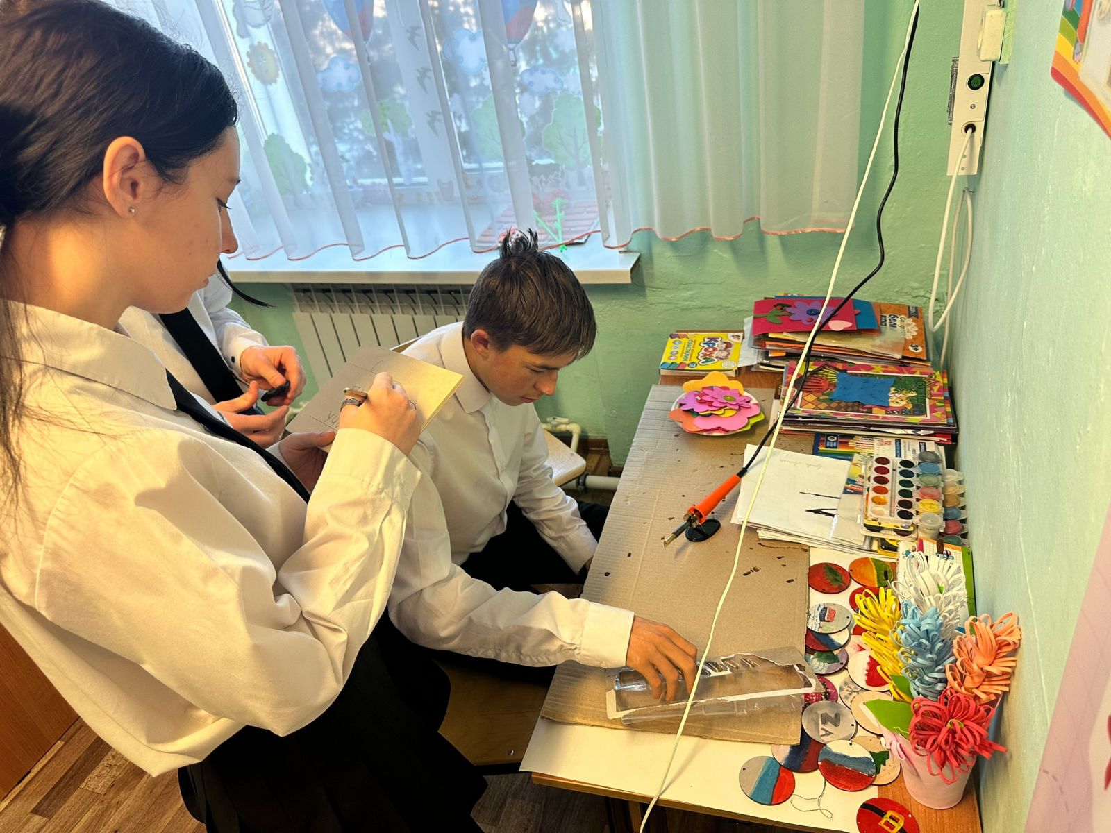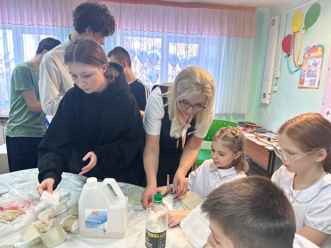 Советник директора по воспитанию Низамутдинова Н.В. совместно с волонтерским отрядом "Добротворцы" ГБОУ "Сокольская школа - интернат для детей с ОВЗ" и с наставниками Движения Первых Муниципального бюджетного общеобразовательного учреждения средней общеобразовательной школы № 5 с углубленным изучением отдельных предметов Бугульминского муниципального района Республики Татарстан провели Мастер-класс по изготовлению сухого душа для участников специальной военной операции. Армейский «сухой душ» – это простой, но важный инструмент, помогающий российским солдатам, находящимся в зоне проведения операции, поддерживать гигиену и сохранять комфортные условия даже в экстремальных ситуациях. Командная работа учит волонтеров сплоченности, договариваться между собой, распределять роль каждого участника. Вся Россия сплотилась, чтобы максимально помочь и поддержать наших ребят, которые участвуют в СВО, защищая страну и нас с вами! Люди объединяются, собирают посылки с вещами, продуктами, медикаментами, льют свечи, плетут сети. Такая помощь не только помогает бойцам соблюдать гигиену и закреплять экипировку, но и напоминает о доме, о тех, кто ждёт своих героев. Мы тоже объединились и изготовили наборы сухого душа для поддержания чистоты и боевого духа бойцов!