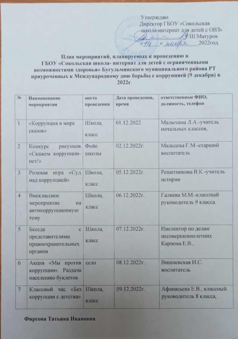 План мероприятий приуроченных Международному дню борьбы с коррупцией (9 декабря 2022 год).