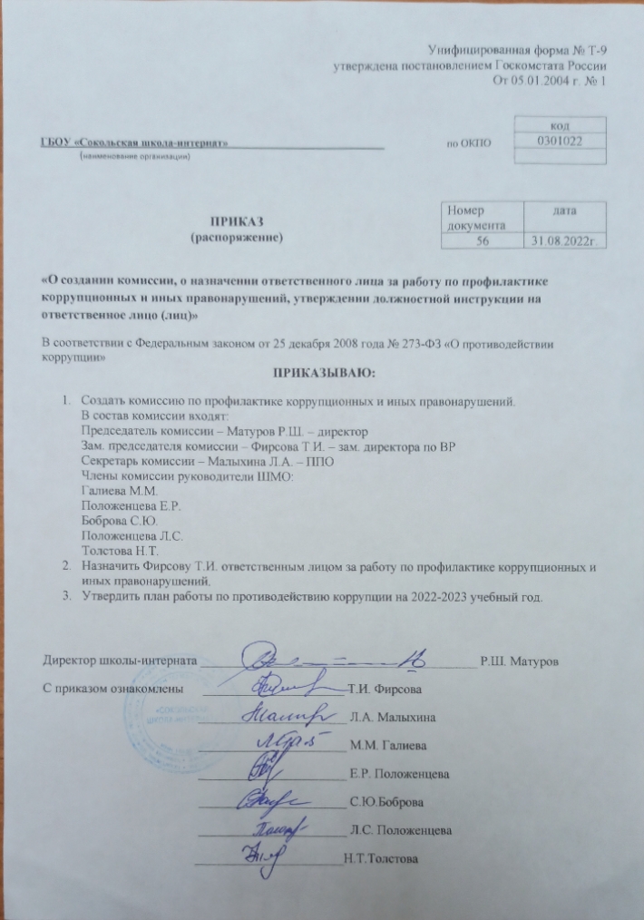 План работы по противодействию коррупции на 2022-2023 учебный год