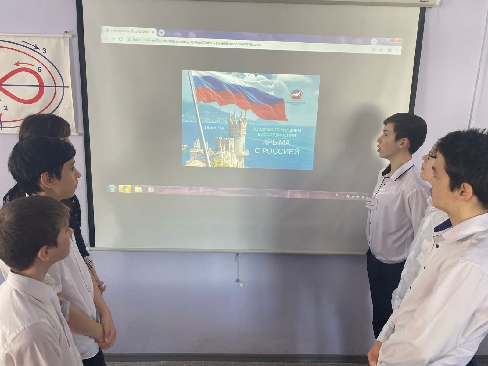 В 7-9 классах прошел классный час «Крым и Россия – общая судьба». Вниманию школьников были представлены презентации и фильм «Экскурсия по Крыму» о достопримечательностях Крымской республики и города Севастополь.