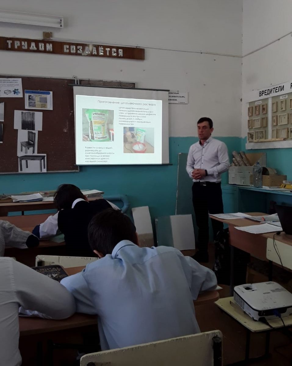 - Открытый урок по технологии «Малярно-штукатурное дело» в 6 классе провёл учитель Санков А.Н. Тема: «Шпатлевание поверхности» Цель: Развивать умения и навыки по подготовке и обработке деревянных поверхностей.