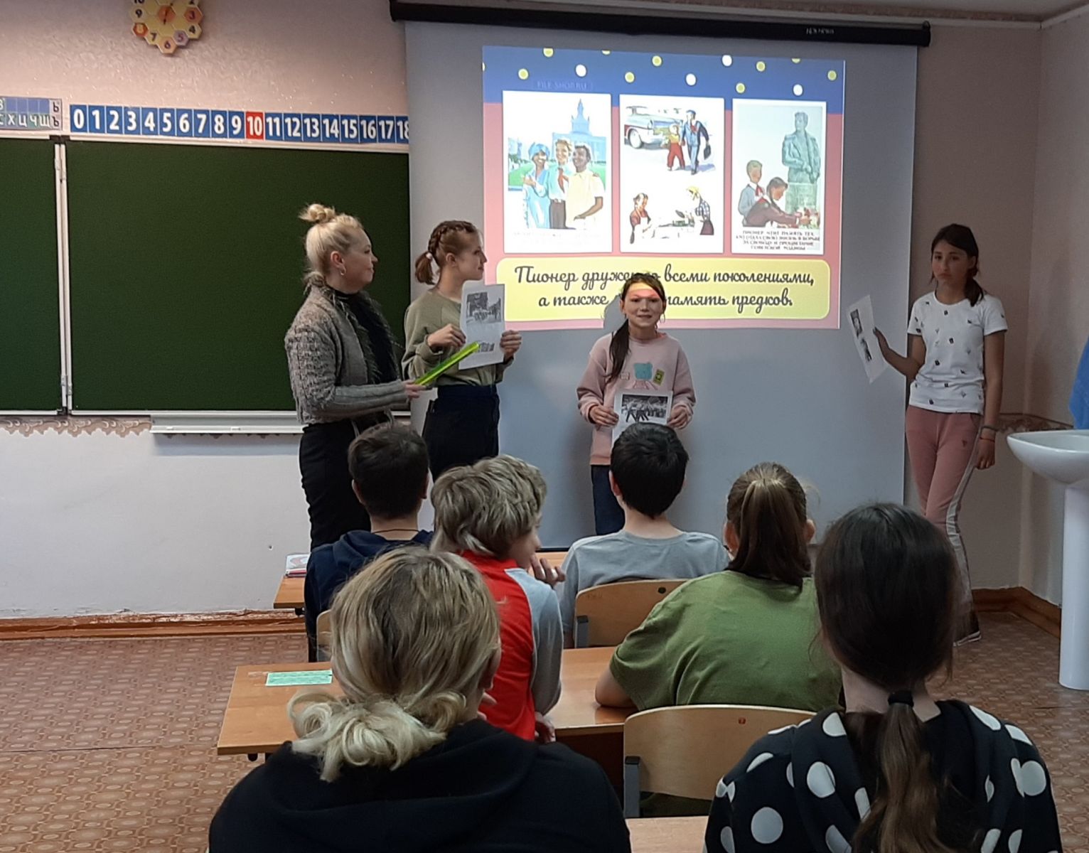 Ребята посмотрели видеофильмы, презентации, услышали пионерские песни. Узнали о пионерах-Героях. Это патриотическое мероприятие показало ребятам, как надо делать добро, любить свою Родину и дорожить её историей.
