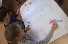 12 апреля 2017 года для учащихся 1-4 классов АНО ОО "Прогимназия №14" был организован и проведен воспитателями ГПД информационный час «Долгая дорога в космос», посвященный Дню Космонавтики.