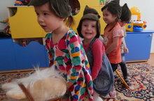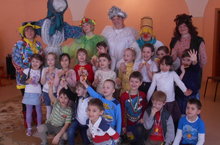 Гуляния проходили в музыкальном зале. Праздник начался с проводов Зимы. Ушла Зима с песнями и заговорами, и на смену ей пришла красивая и нарядная Весна. Она встретила детей загадками, играми и плясками. Потом прозвучала тревожная музыка, и на площадку выбежала Баба Яга, одетая Масленицей. Ребята с восторгом встретили появление этого персонажа. Скоморохи, Баба Яга и Весна устроили для детей соревнования и русские народные, татарские, английские песни, игры.