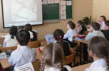 Знакомство с биографией поэта, самыми яркими стихотворениями провела Гумерова Р.Ф., - родительница ученицы 2 класса, которая вместе с дочерью собрали интересную информацию: побывали в музее поэта в деревне Мустафино и создали яркую презентацию о Мусе Джалиле. Ребята с интересом смотрели видео и кинокадры, задавали вопросы и слушали стихи великого татарского поэта.