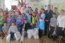 Многим детям предстоит встретить Новый год в больнице, и появление сказочных героев стало для них настоящим праздником. Конкурсы, игры, песни, дикие пляски Бабы-Яги, хоровод с Дедом Морозом около елки – все это создало в украшенном зале больницы праздничное настроение. Каждый малыш от Деда Мороза и Снегурочки получил сладкий новогодний подарок и сувенир.