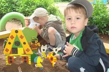 Ребятам из группы № 5 «Журавушка» очень нравится играть в песочный театр, озвучивать и брать на себя роль персонажей сказки. Строят из песка разнообразные декорации из песка, украшают и добавляют детали интерьера. Сколько творчества, фантазии, радости получили дети, создавая различные шедевры своего мастерства.