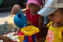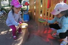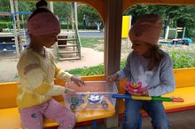 Родители и не догадываются, что одно из самых развивающих ребенка мест – песок. Ребята прогимназии обнаружили, что сухой песок можно просеять и насыпать целый бархан, проложить дорогу для транспорта. Рисовать на песке или сухим песком по мокрому, печь куличики из мокрого песка, а если его просеять, то получатся "кудрявые макароны". А сколько тактильных впечатлений получаешь, засунув руку в песок или провалившись в него ногами! Как здорово прятать в песке, а потом находить секретики! Но самое ценное – это социальные навыки, полученные на песочнице.
