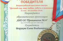 АНО ОО "Прогимназия №14" награждена медалью за победу во Всероссийской выставки - смотра: "Детский сад: мир любви заботы и внимания". Поздравляем!!!