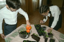 оборудование и семена, и наблюдают за первыми всходами рассады для озеленения клумб школы. Удачи, ребята! -