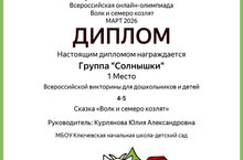 Наша разновозрастная группа "Солнышко" приняла участие во Всероссийской онлайн-олимпиаде по сказкам.