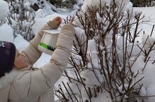 Достали корм: зёрна и крошки, и насыпали их в кормушку. -