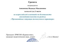 Поздравляем студентку нашего техникума Анисимову Надежду с 1 местом во Всероссийской олимпиаде по безопасности жизнедеятельности по разделу «Чрезвычайные ситуации техногенного характера».