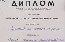 Студент нашего техникума Конов Никита принял участие в Республиканской олимпиаде по дисциплине «Метрология, стандартизация и сертификация» и был удостоен диплома победителя в номинации «Лучший по решению задач».