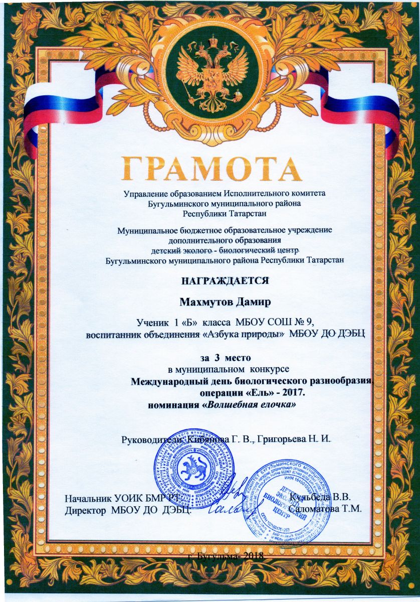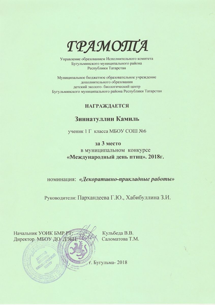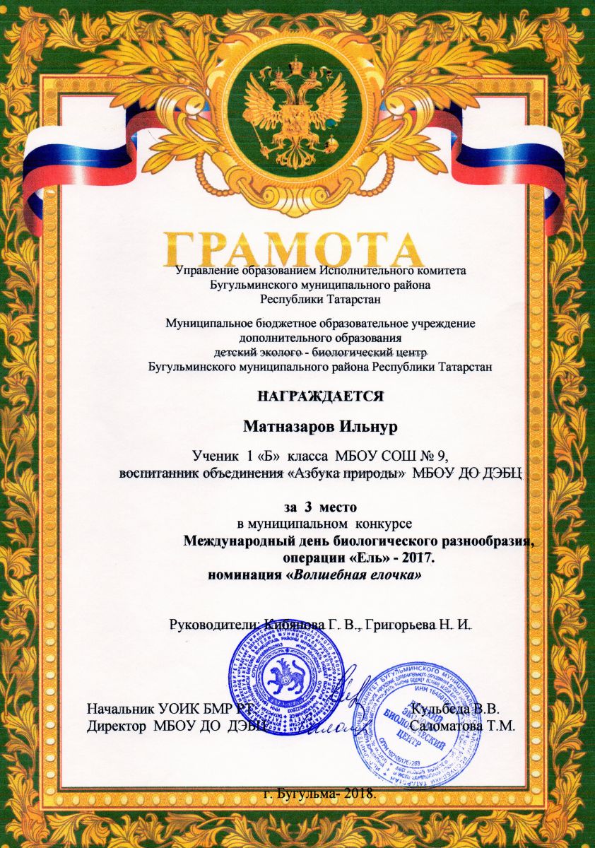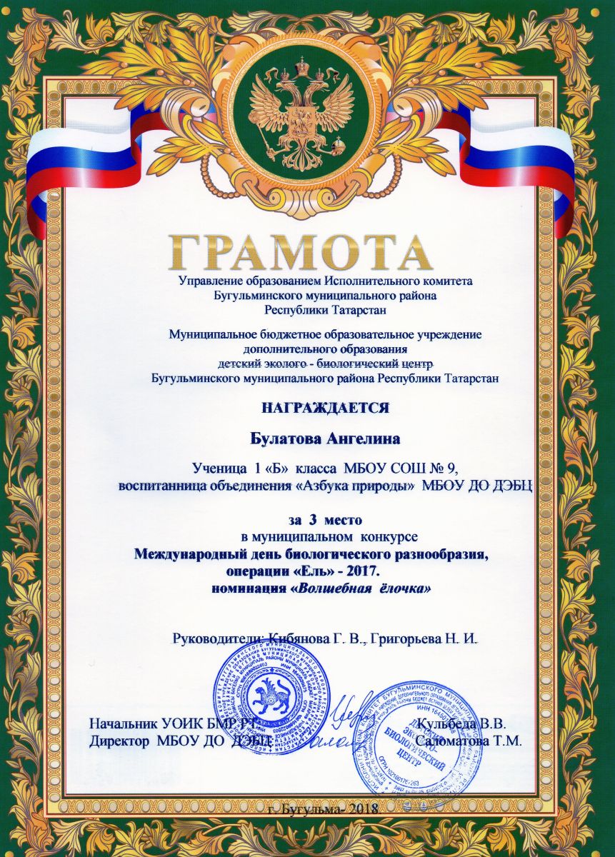 Муниципальное бюджетное образовательное учреждение дополнительного образования детский эколого-биологический центр Бугульминского муниципального района Республики Татарстан