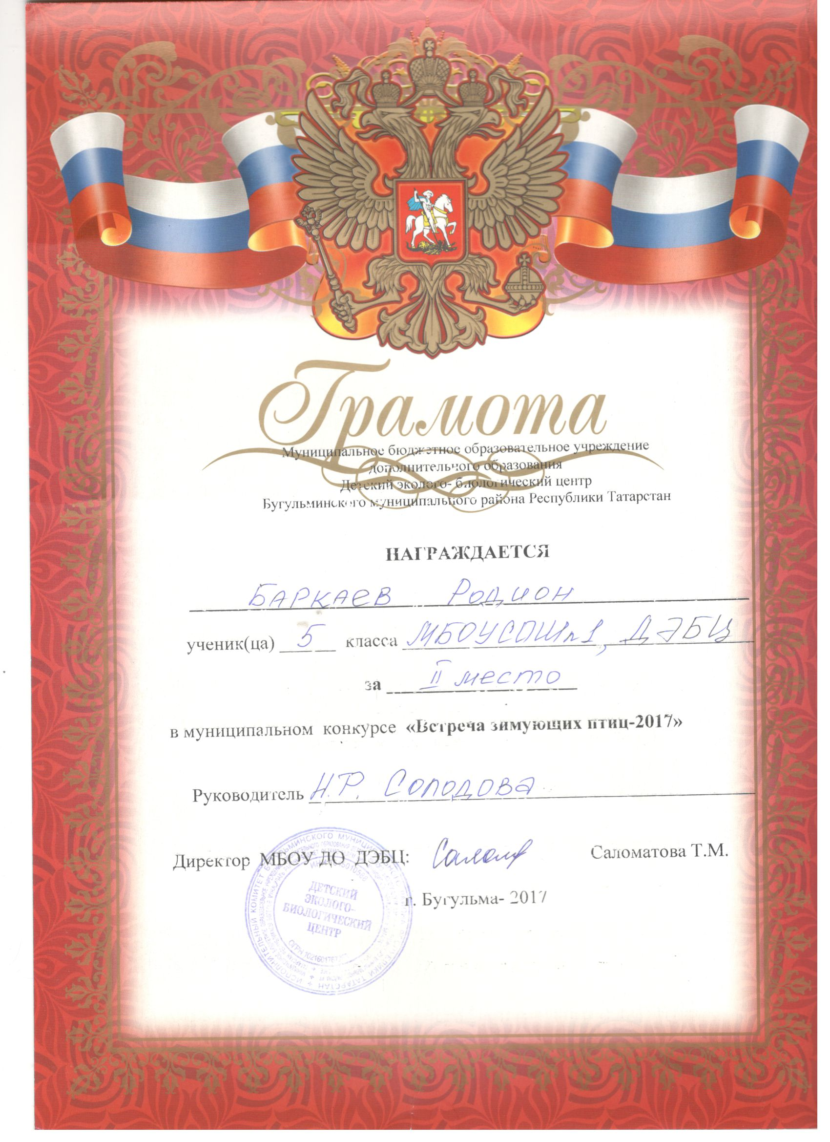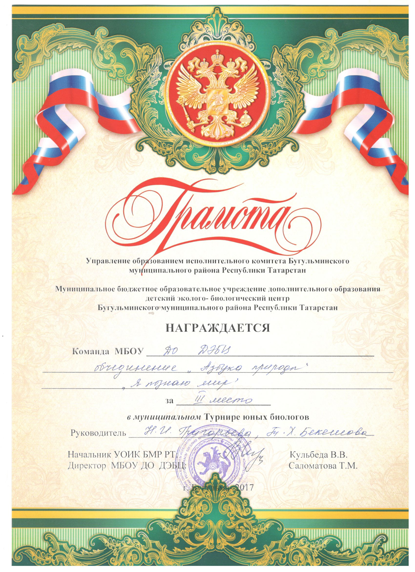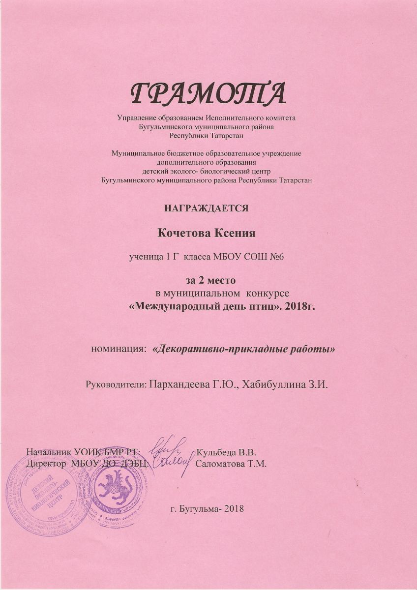 Муниципальное бюджетное образовательное учреждение дополнительного образования детский эколого-биологический центр Бугульминского муниципального района Республики Татарстан