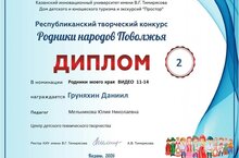Поздравляем Груняхина Даниила, занявшего второе место в республиканском творческом конкурсе «Родники народов Поволжья» в номинации «Видео», и его педагога — Мельникову Юлию Николаевну! Желаем новых ярких проектов и побед!