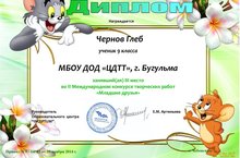Поздравляем победителей II Международного конкурса творческих работ "Младшие друзья" - Боброву Ксению (лауреат), Третьякову Елизавету (лауреат), Чернова Глеба ( III место), Чуйкову Ксению (лауреат). МОЛОДЦЫ!!! ТАК ДЕРЖАТЬ!!!