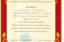 12 декабря 2014 года, рамках реализации Направления "Распространение инновационных моделей развития техносферы деятельности учреждений дополнительного образования детей, направленных на развитие научно-технической и учебно исследовательской деятельности обучающихся" ФЦПРО 2011-2015 г.г. и Республиканского проекта "Школа после уроков" на базе МАОУ ДОД "Центр детского технического творчества №5" г. Набережные Челны была организована стажерская площадка по распространению в РТ инновационных моделей развития техносферы деятельности учреждений дополнительного образования детей на тему "3D-моделирование".