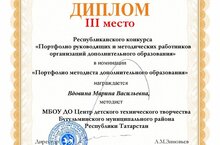 Поздравляем нашего методиста Вдовину Марину Васильевну с заслуженным дипломом в республиканском конкурсе "Портфолио руководящих и методических работников организаций дополнительного образования", и желаем дальнейших успехов и карьерного роста!