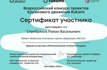 По итогам регионального этапа проект Серебрякова Романа (руководитель - Жилин Сергей Анатольевич), вышел в финал Всероссийского конкурса и будет представлять свой проект в Москве в ноябре 2020 года.