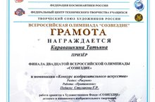 Призер XX Всероссийской олимпиады "Созвездие" - Каравашкина Татьяна.