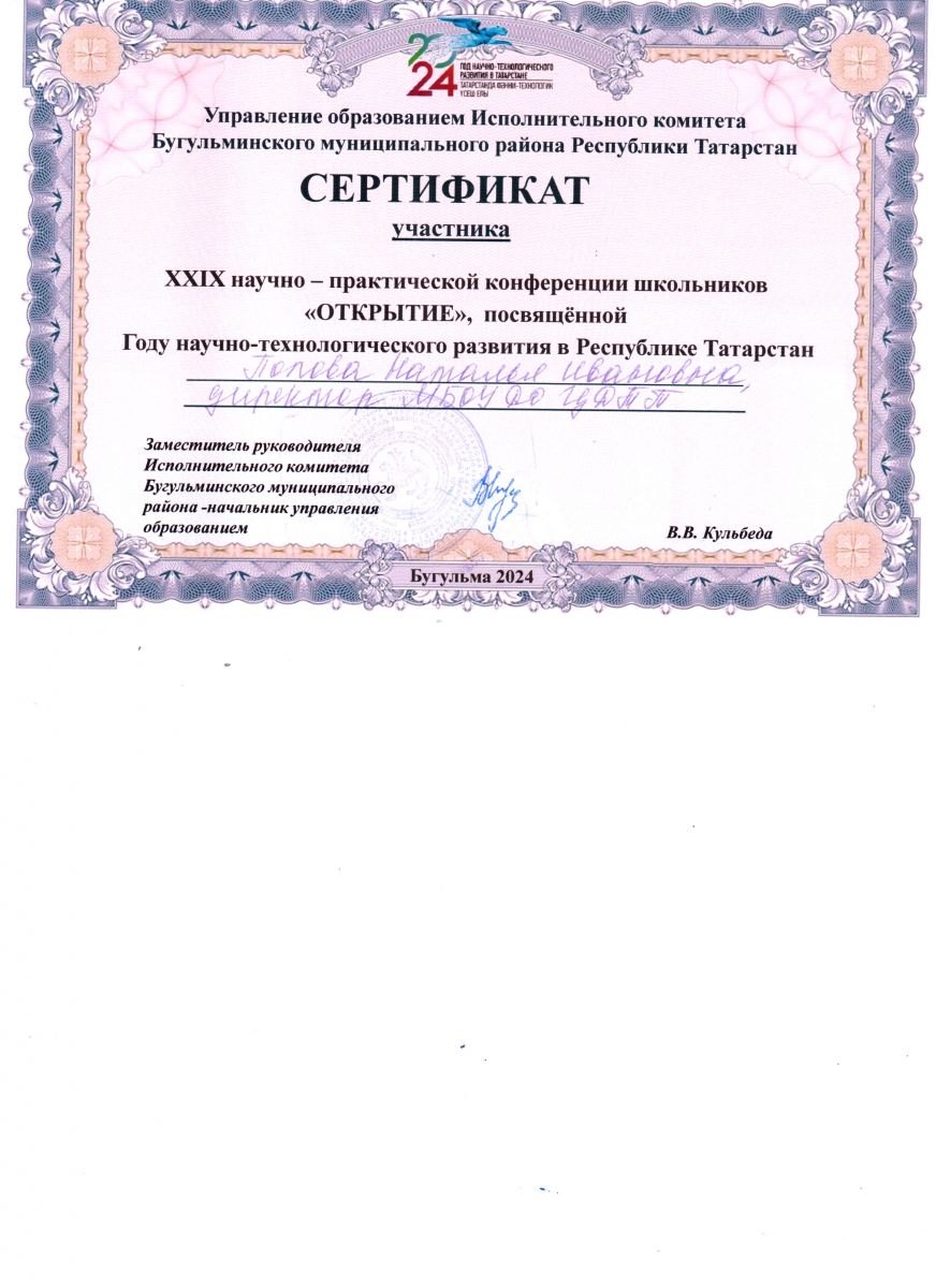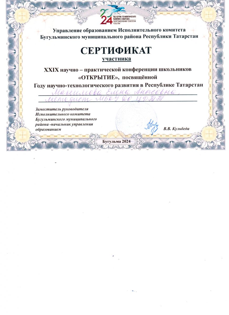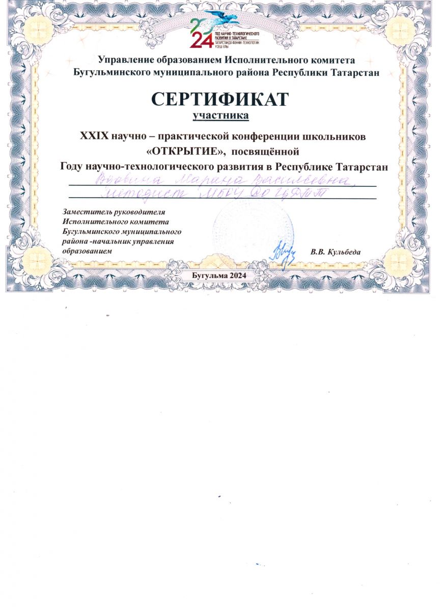 19. XXIX муниципальная научно-практическая конференция школьников "Открытие", посвященная Году научно-технологического развития в РТ Сертификат Сертификат Сертификат