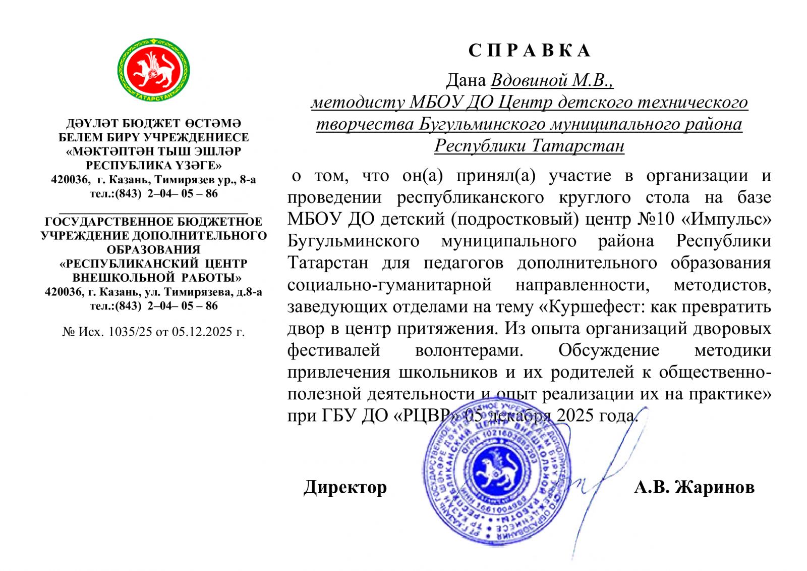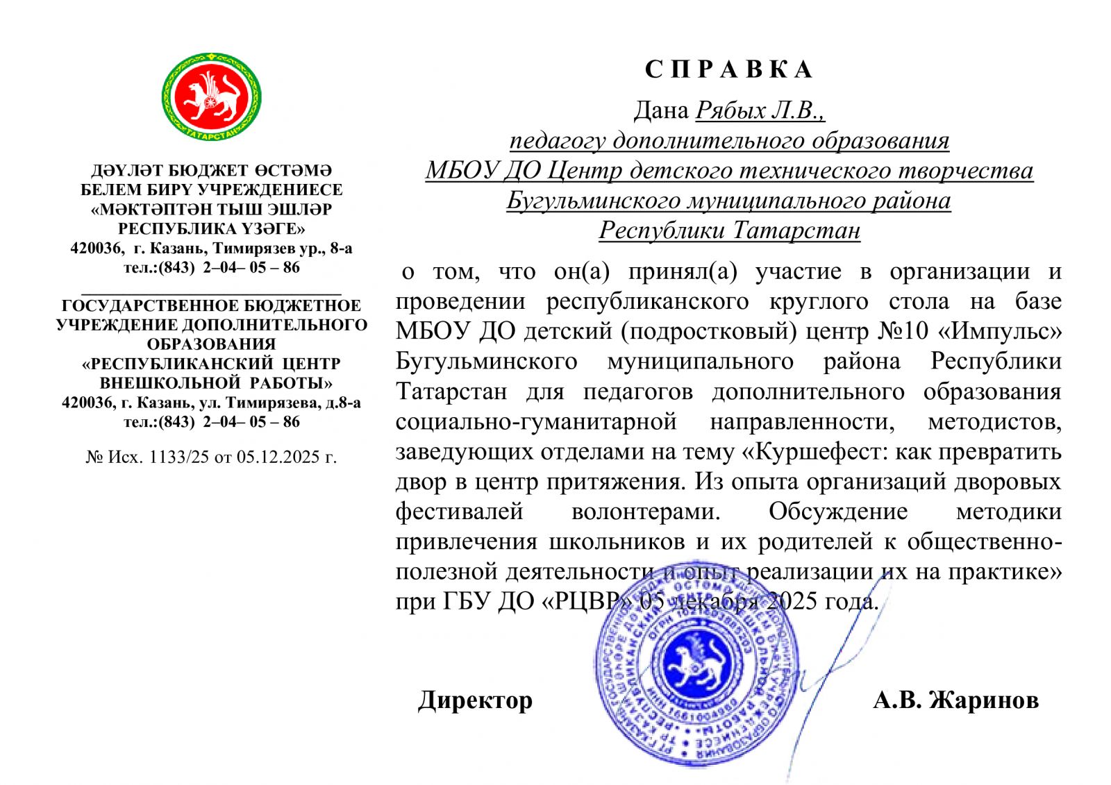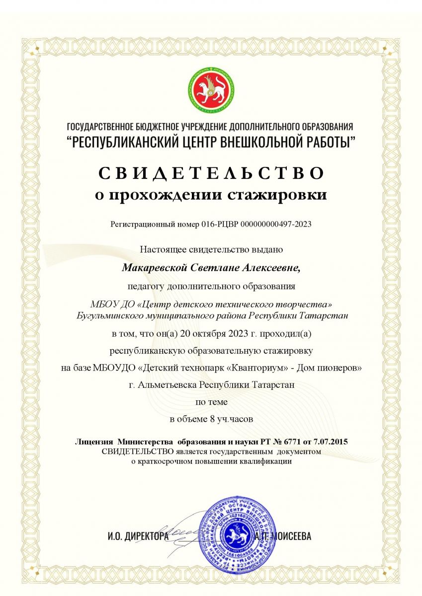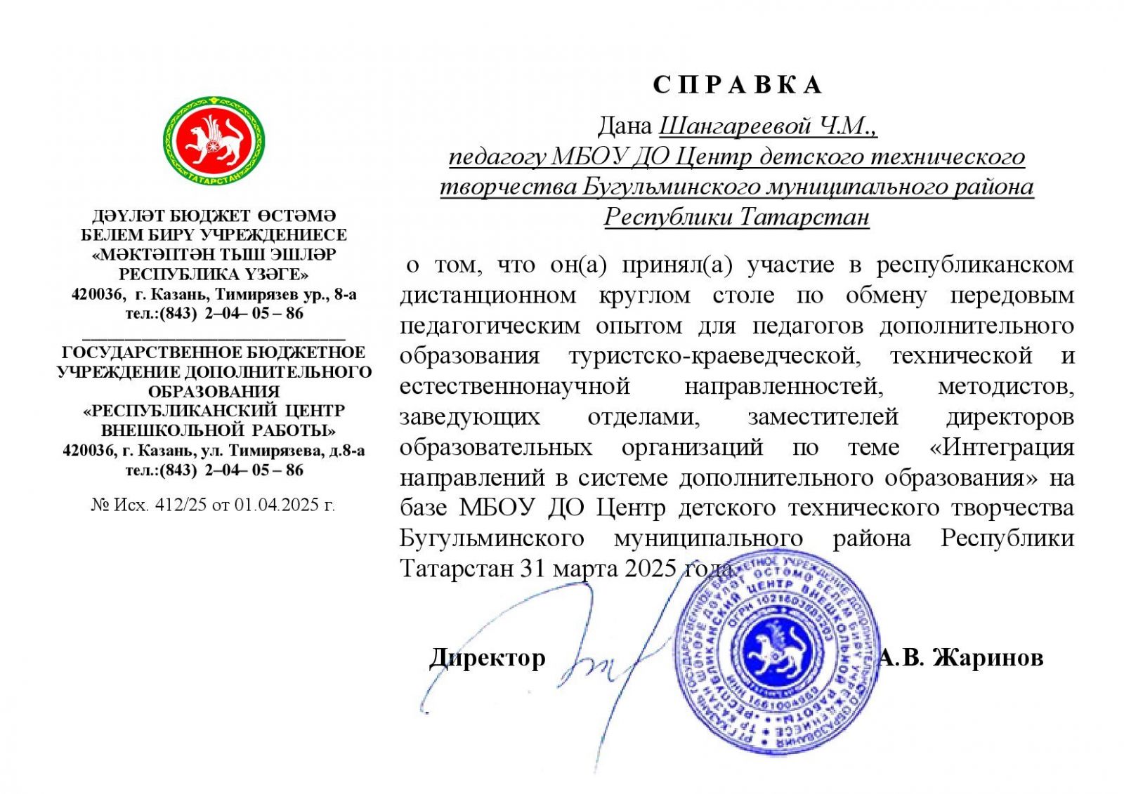 2. Республиканская образовательная стажировка по теме "Информационные технологии. Применение ИИ чатов в образовательном процессе. Разработка веб-приложений. Технология виртуальной реальности" на базе МБОУ ДО "Детский технопарк "Кванториум" - Дом пионеров" г.Альметьевск Свидетельство Свидетельство Свидетельство Свидетельство