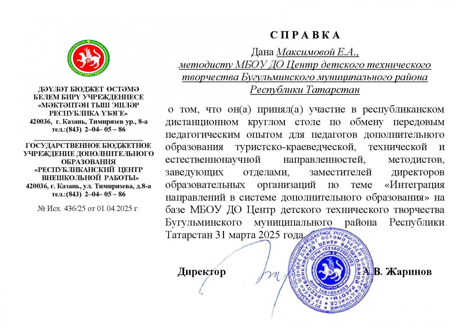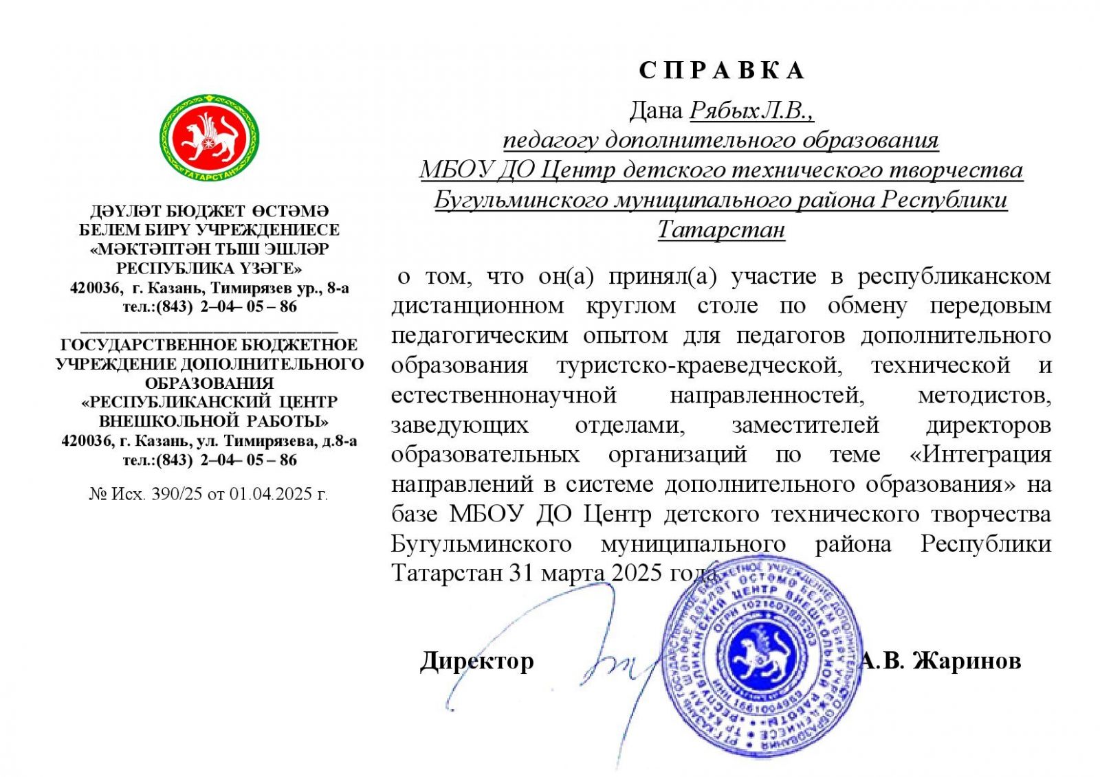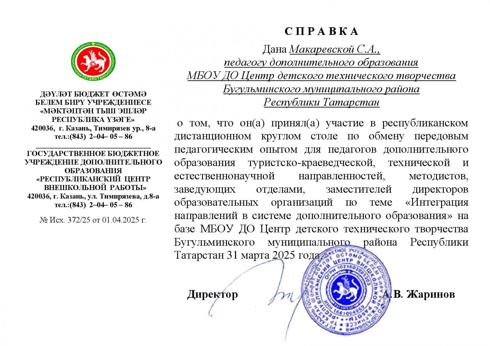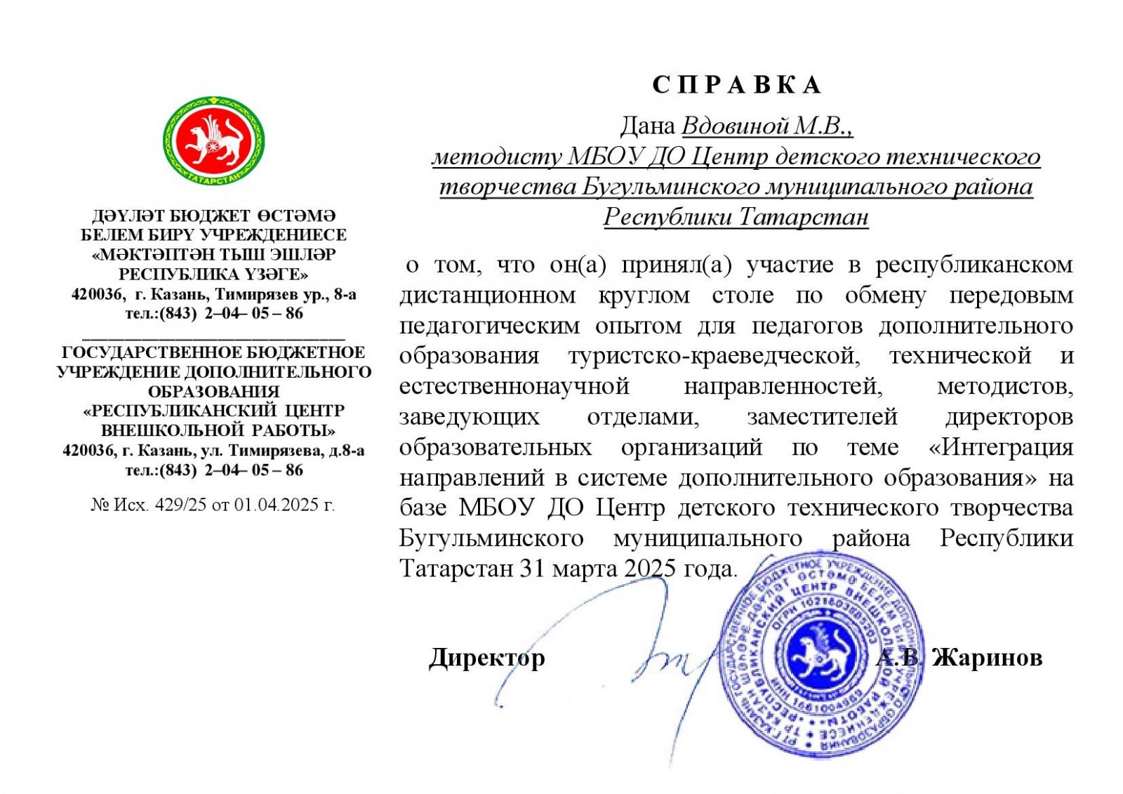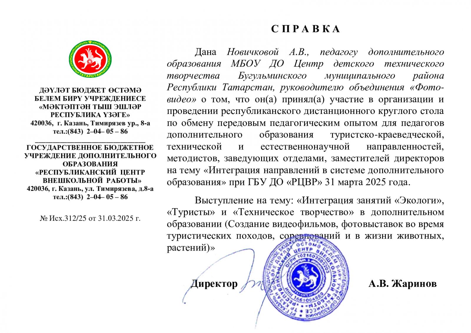 14. Республиканский дистанционный круглый стол по обмену передовым педагогическим опытом для педагогов дополнительного образования туристско-краеведческой, технической и естественнонаучной направленностей, методистов, заведующих отделами, заместителей директоров образовательных организаций по теме "Интеграция направлений в системе дополнительного образования" справки выступающих: Справка Справка Справка Справка, справки участников: Справка Справка Справка Справка Справка Справка Справка Справка Справка Справка Справка Справка