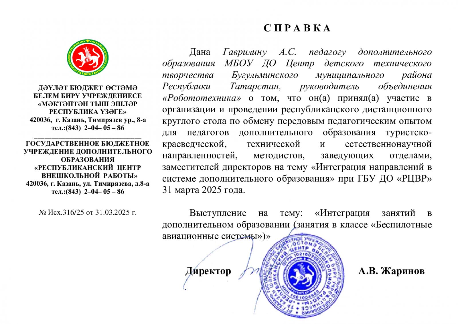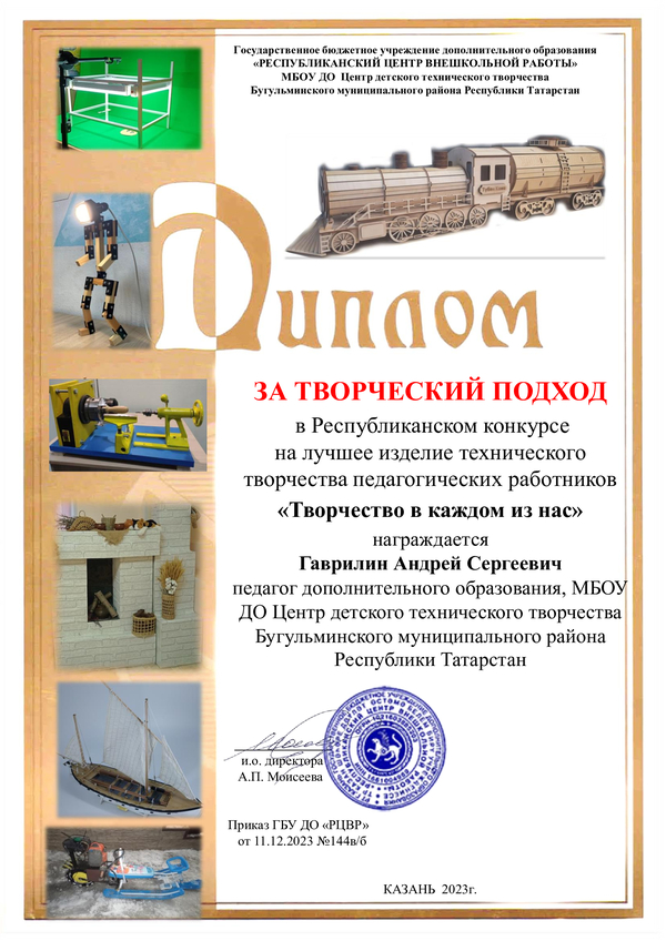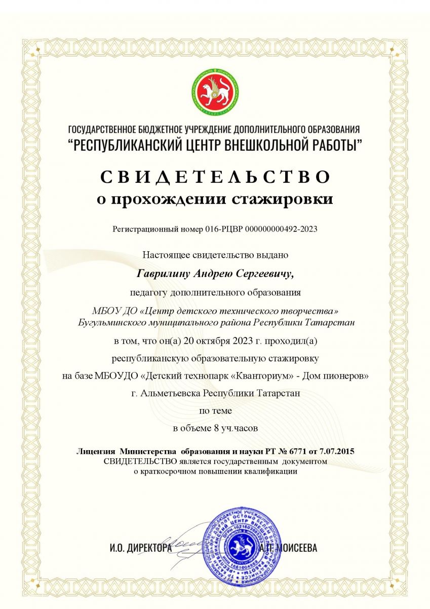 25. Всероссийский конкурс профессионального мастерства работников сферы дополнительного образования «Сердце отдаю детям - 2024»: Муниципальный этап – номинация «Педагог дополнительного образования по технической направленности» - Гаврилин А.С. - 1 место Протокол муниципальный этапУчастник I и II туров Республиканского заочного этапа.