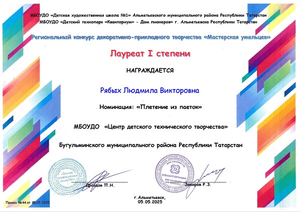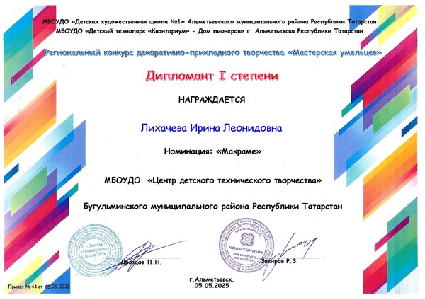 17. Региональный конкурс декоративно-прикладного творчества «Мастерская умельцев» Дипломант I степени Лауреат I степени