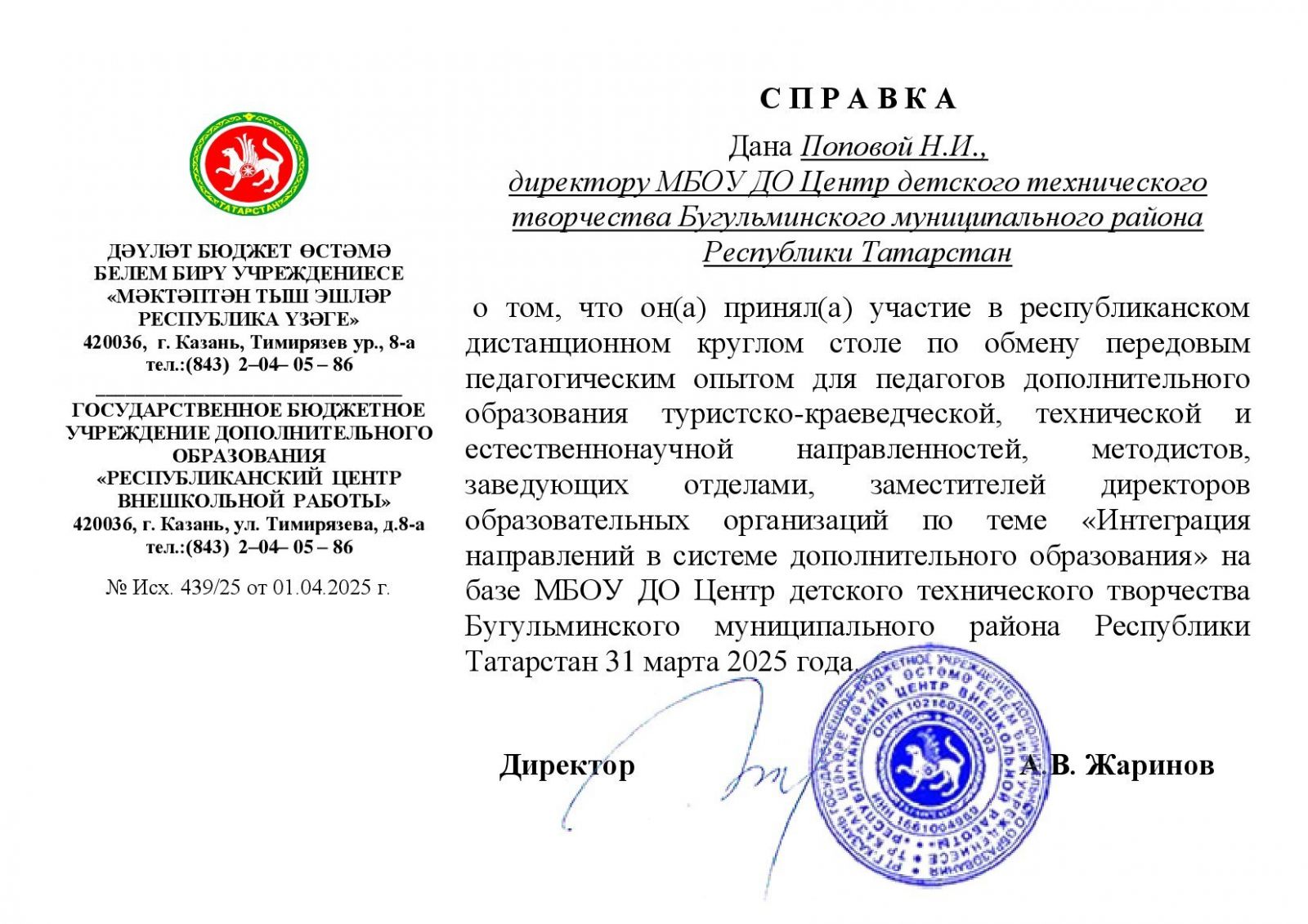 Муниципальное бюджетное образовательное учреждение дополнительного образования Центр детского технического творчества Бугульминского муниципального района Республики Татарстан