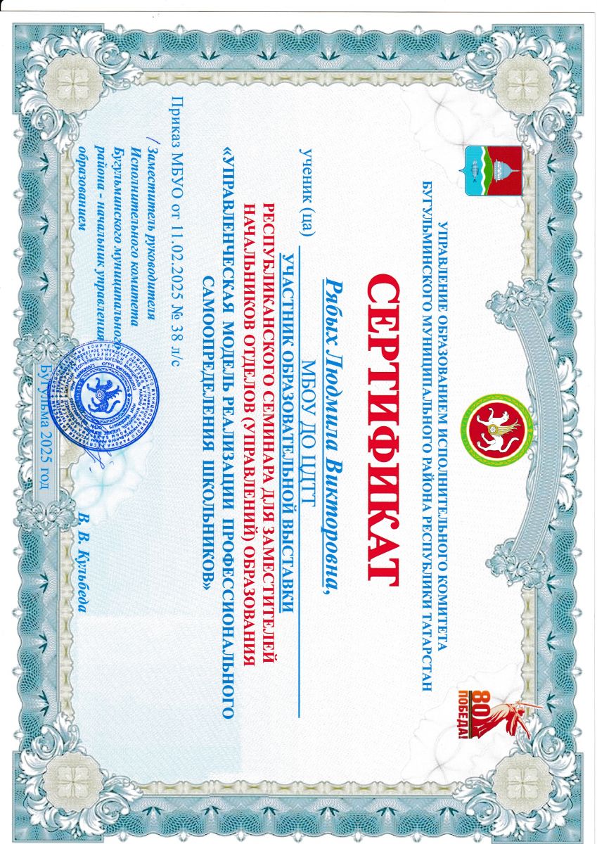 7. Обучающий семинар "Движение первых" в Татарстане Сертификат Сертификат