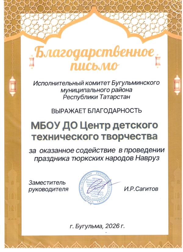 28. Проведение праздника тюркских народов «Навруз» Благодарственное письмо