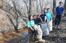 ЭКО десант 8 класса провел работу по очистке части русла речки Салоязка от мусора,намытого весенним паводком.