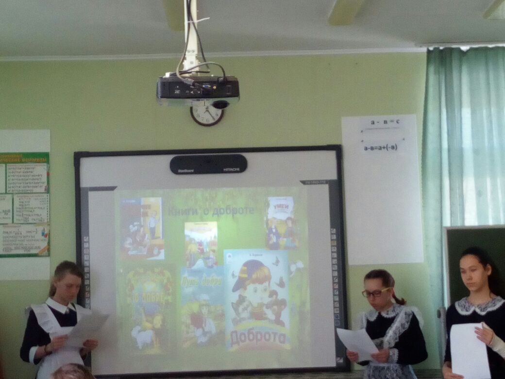16 марта, в рамках акции «Неделя добра», учащиеся 5 класса защищали свои проекты по теме «Дорогою добра». Самостоятельная творческая деятельность была реализована учащимися совместно с классным руководителем Пугачевой Н.М. Важная часть занятия – создание благоприятного эмоционального фона, атмосферы сотрудничества, сотворчества, что способствовало раскрытию личностных качеств учащихся. На данном мероприятии дети получили знания о правильном поведении в обществе, дарить радость окружающим людям, доброту и быть всегда милосердными.