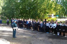 В итоговой части Дня защиты, была проведена экстренная эвакуация педагогов, учащихся и работников школы по сигналу: «ВНИМАНИЕ, ВСЕМ!» с командой «Пожар».