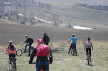 Обратный путь от озера прошел по излюбленным местам отдыха людей на природе, где они жгут костры и оставляют много мусора. Для этой экологической цели каждый член вело-группы взял с собой пакет. Но к всеобщему положительному удивлению, мусора, оставленного на природе в этот раз оказалось не много.