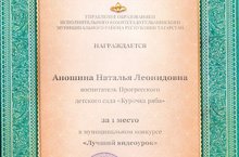 Поздравляем воспитателя Аношину Наталью Леонидовну, занявшую 1 место в Муниципальном конкурсе "Лучший видеоурок"