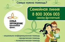 В рамках семейно-демографического проекта «На защите семьи и детства» открыт федеральный номер Семейной линии 8-800-3006-003. По телефону ежедневно и круглосуточно можно получить безвозмездную социально-информационную, консультационную, юридическую и иную помощь. Проект направлен на формирование комфортной семейной среды в регионах России и оказание оперативной помощи семьям с детьми.