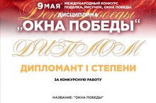 Воспитатель дошкольной группы Маркова О.В.приняла участие в Международном конкурсе "Окна Победы". Стала Дипломантом 1 степени.
